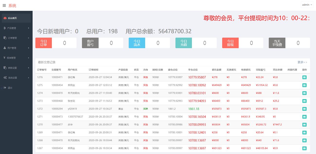 这套微盘源码是目前市面上少有的程序,虽然和站里之前发布的一些微盘系统用的是同一个母框架开发出来的,但是不同之处还是蛮大的,首先是产品(微盘)种类不同,这套源码不仅有虚拟币、贵金属、国外货币盘,还有国内的沪深盘,另外就是本套源码系统带有 基金宝(也可以叫余额宝吧)功能,余额存入可以产生收益的那种,这个东西在很多微盘程序里是不常见的哦。