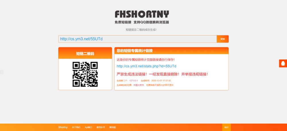 功能列表:短链接生成,短链接加密,短链接二维码,短链接API,短链接自定义后缀,二维码API,QQ内部自动替换至浏览器打开,自定义广告等等。