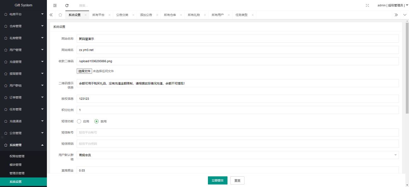 这是一套用thinkphp为内核开发的礼品采购/礼品代发网站源码,系统内含有三种支付方式,分别为:联系客服充值、码支付、和银行卡,其中银行卡也是转账后要联系客服进行充值的,码支付则是直接线上自动付款充值,个人站长也可免签越收款!