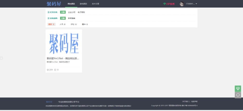 今天,我给大家分享一套很新的资源付费下载网站源码,这套源码该有的功能差不多都有了,积分、vip制度什么的都有,只不过在样式方面没有做自适应样式,所以就不适合一点代码都不懂的萌新了,大家下载后,如果有需要可以自己做下自适应。还有就是,源码里没有对接第三方免签支付平台,这个有能力的还是建议对接一下。当把自适应和第三方免签支付平台都搞定后,这套源码我相信价格会蹭蹭的上涨,到时大家可以自用,也可以拿到聚码屋出售!