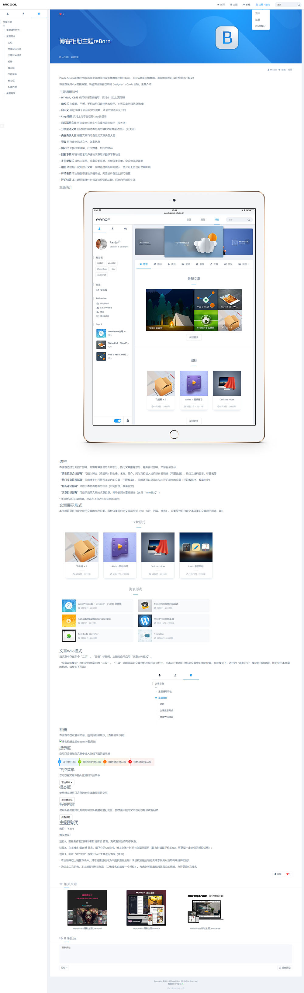 一套非常优秀的WordPress博客类/相册类主题,目前已更新至5.1版本,是由知言内核开发的wordpress主题,reBorn主题前身是国外大神开发的主题,reBorn为其中文汉化优化版本,功能齐全、兼容性强、全面支持WordPress5.0。