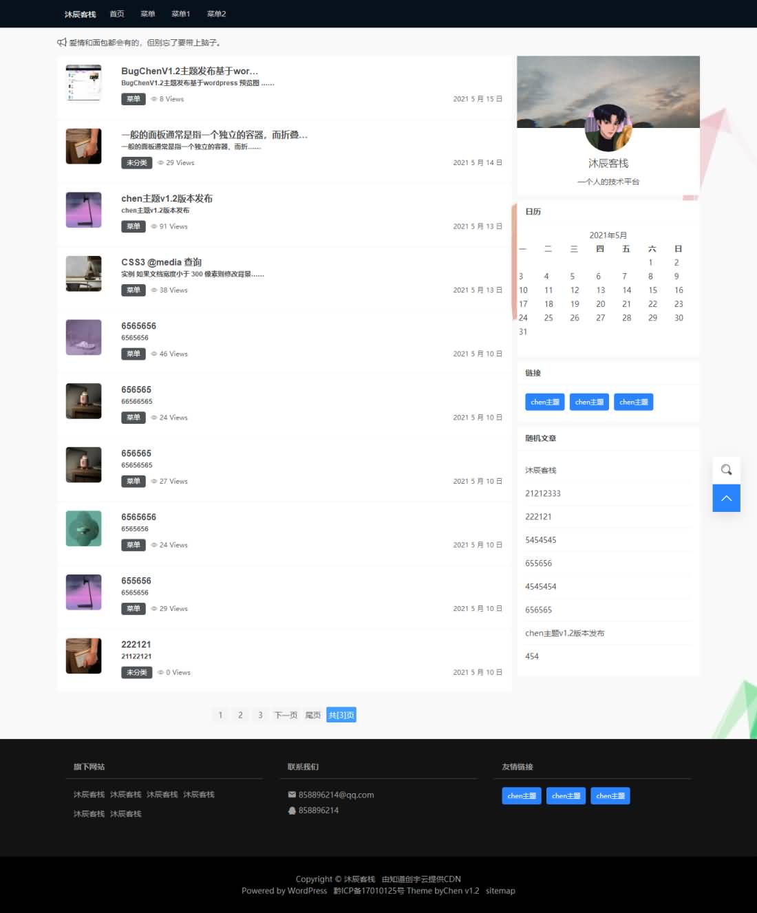 「亲测」wordpress个人博客主题chen主题v1.2版-WP个人简约博客模板下载