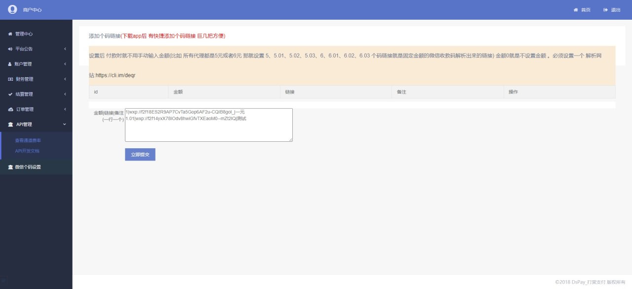 至于源码的主线功能,也就是支付功能、支付回调什么的我就没有测试了,主要是因为我没有条件去测试的(我没有签约微信和支付宝官方支付),其次我也不知道这个入金渠道是怎样设置的~~~像网关地址、页面通知地址和服务器通知地址什么的不知道该怎样填写,没玩过这类程序,对这些东西很懵逼!