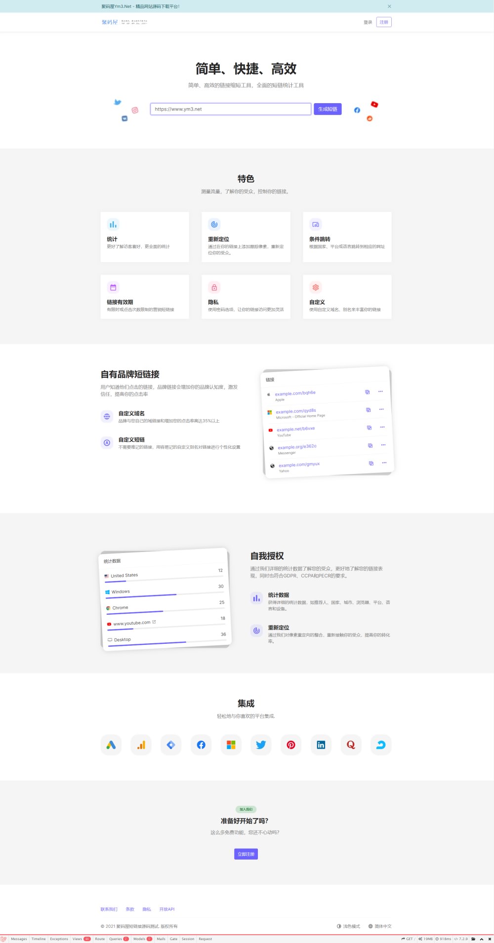 这是一款价值$49(约¥316)的多语言版PHP短网址源码,功能十分强大,可自定义短链接,可跟踪统计用户来源和点击数,还带有Api接口等等,下面给大家稍微列举一下它的功能供大家参考: