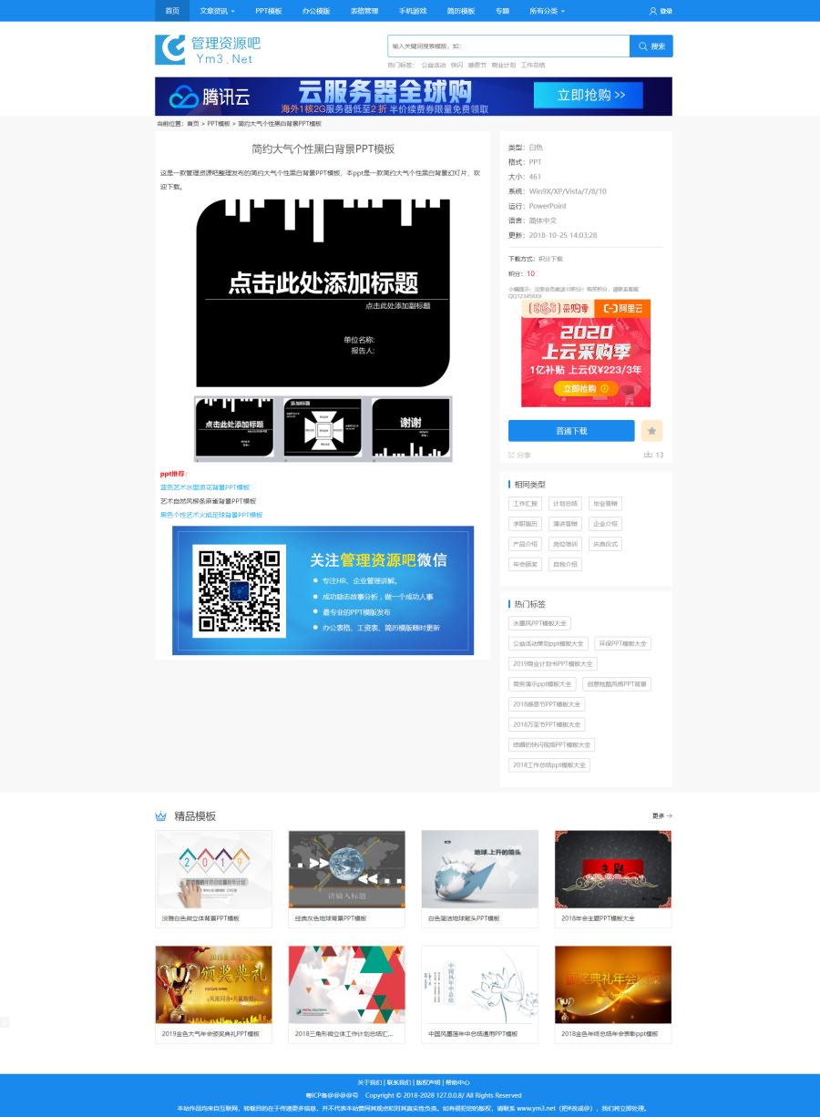 「亲测」帝国CMS模板|帝国cms7.5仿管理资源吧PPT模板资料下载网站源码 带会员+积分付费下载+自动采集+搭建教程