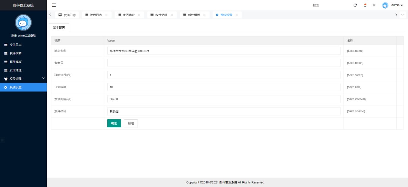 然后,具体的邮件群发功能我就没有进行测试了,因为不仅要配置发信邮箱,还要配置收件邮箱,这个不方便测试的,也比较费时间,有兴趣的下载后,自行搭建测试体验就好,介意者和小白请慎下。