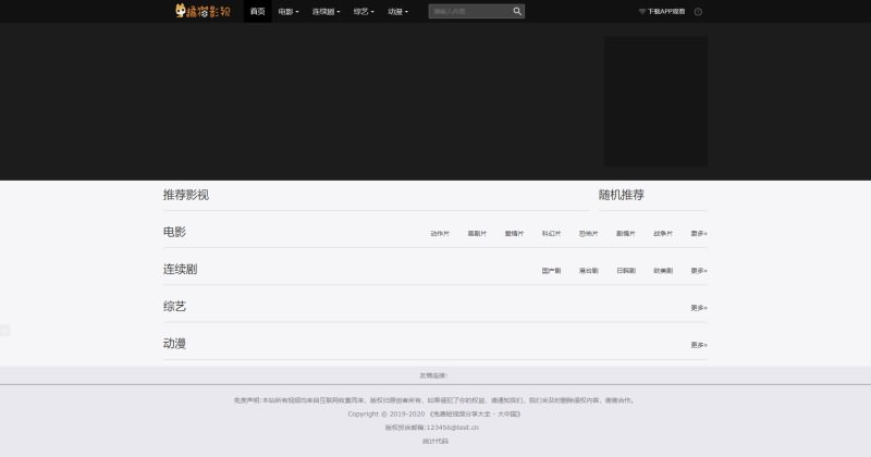 ps:因为测试站是没有视频数据的,所以截图页面都是空白,可能展示效果不是很好,但是没办法,我百度搜了下,没发现哪个网站有此两套模板的截图,大家参考下吧。