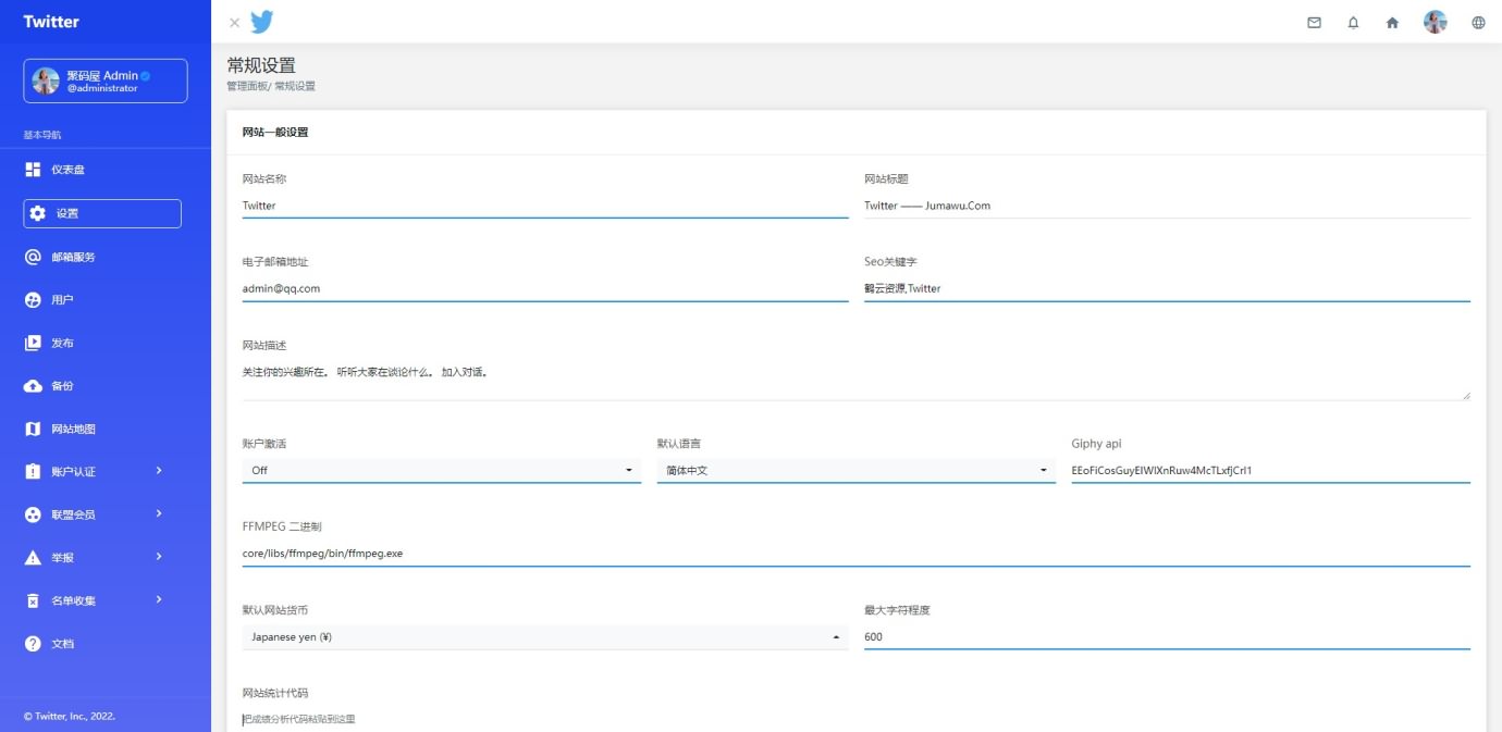 测试报告:就如下面源码亲测截图中所展示的一样,我把首页和后端的各个页面都点击打开看了下,每个页面都能正常打开和展示,前端的推文功能也正常发布,还有推文的关注、评论、喜欢和收藏、用户信息的修改等都可正常运行!后端网站的设置项也都可顺利保存!