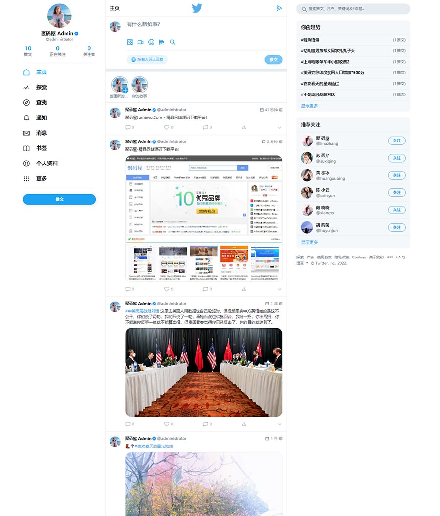 最近马斯克收购推特Twitter网站的信息被刷屏了,各个大小媒体都在说,吃瓜群众也都围在一起扯东拉西了!今天我就给大家分享一下仿推特社区网站源码。