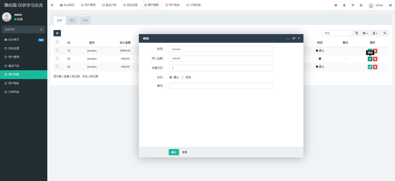 使用thinkphp开发、基于FastAdminf框架的一套投资理财源码,源码样式简洁,但耐看,功能明朗,搭建和使用上也没什么难度,带长、短期余额宝/余利宝/中银宝。