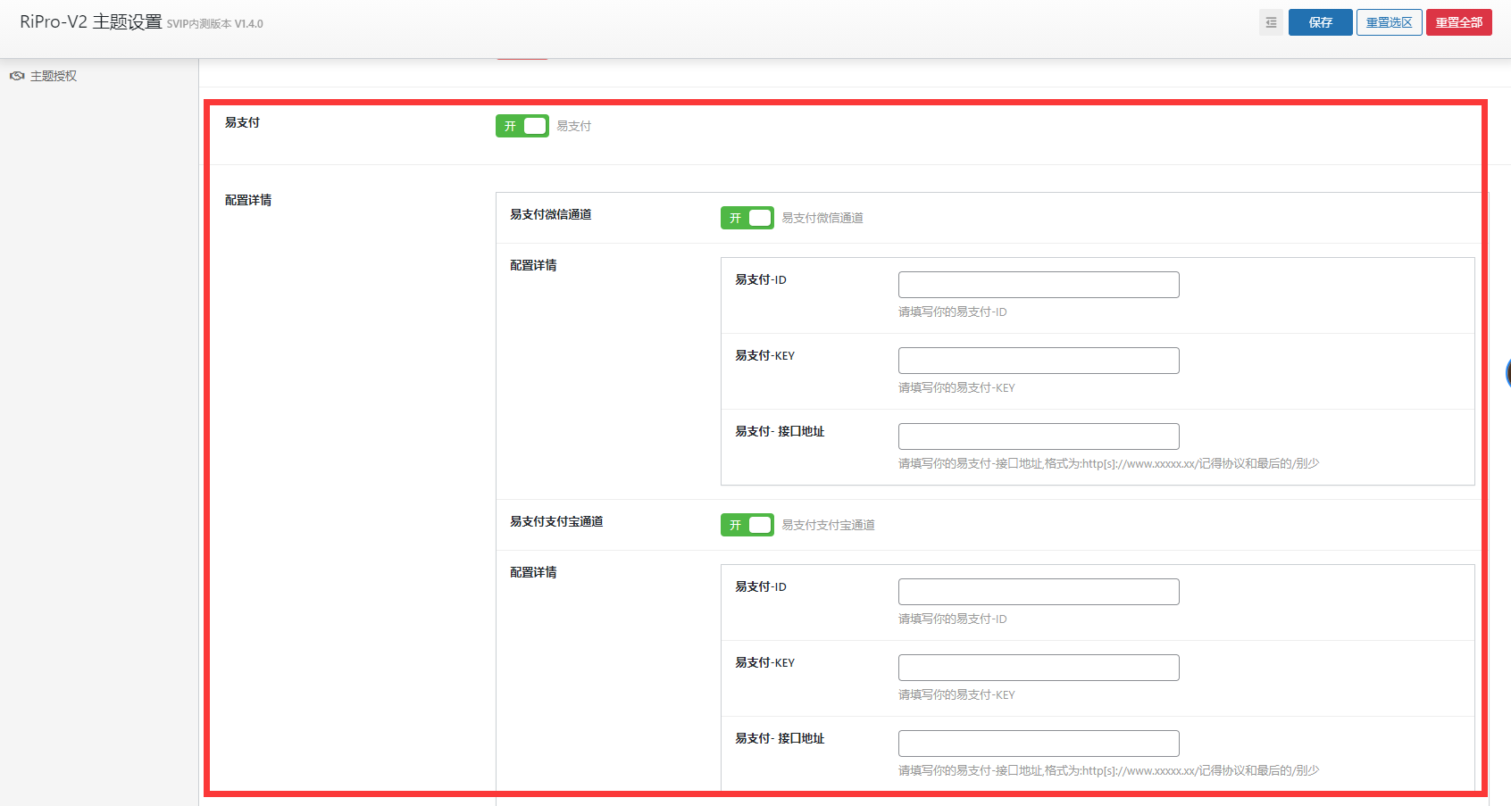 日主题系列对接易支付,亲测可用。包括ripro对接易支付、rizhuti-v2对接易支付、riplus对接易支付。
