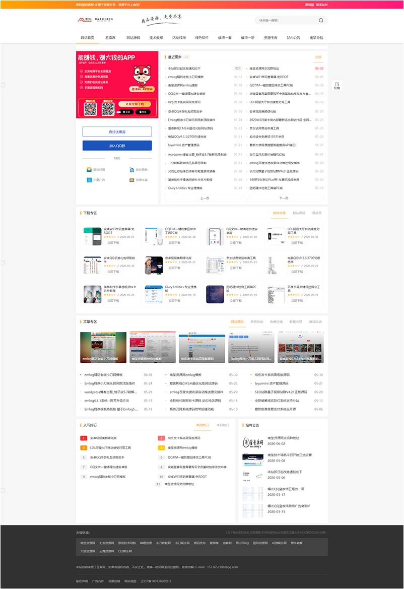 「亲测可用」仿小刀娱乐资源网源码 Emlog内核最新资源网主题下载