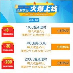 3,购买200元理财币—>每天收益40元/天—>8天320元出局;